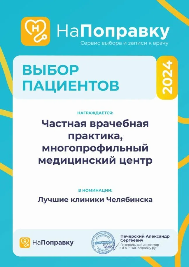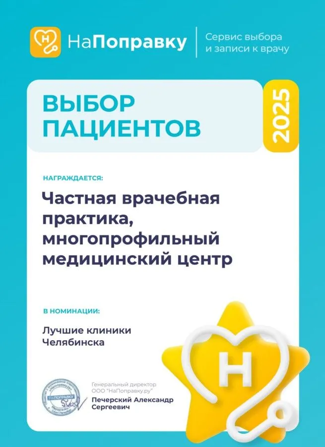 МЦ «Частная врачебная практика, многопрофильный медицинский центр» стал одним из победителей ежегодной премии "Выбор пациентов НаПоправку -2025"
