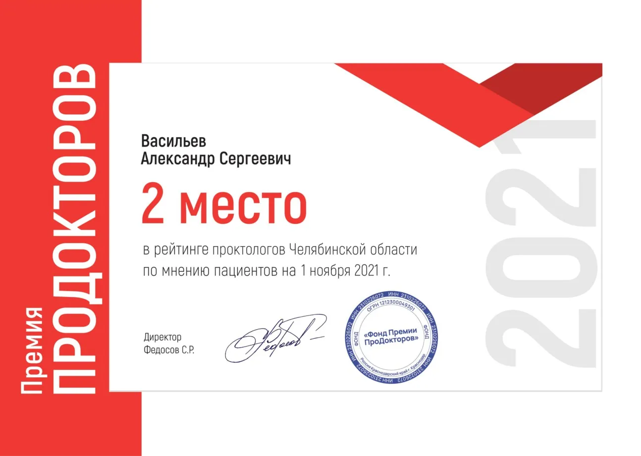 Врач-проктолог Васильев Александр Сергеевич признан одним из лучших в регионе по своей специальности.