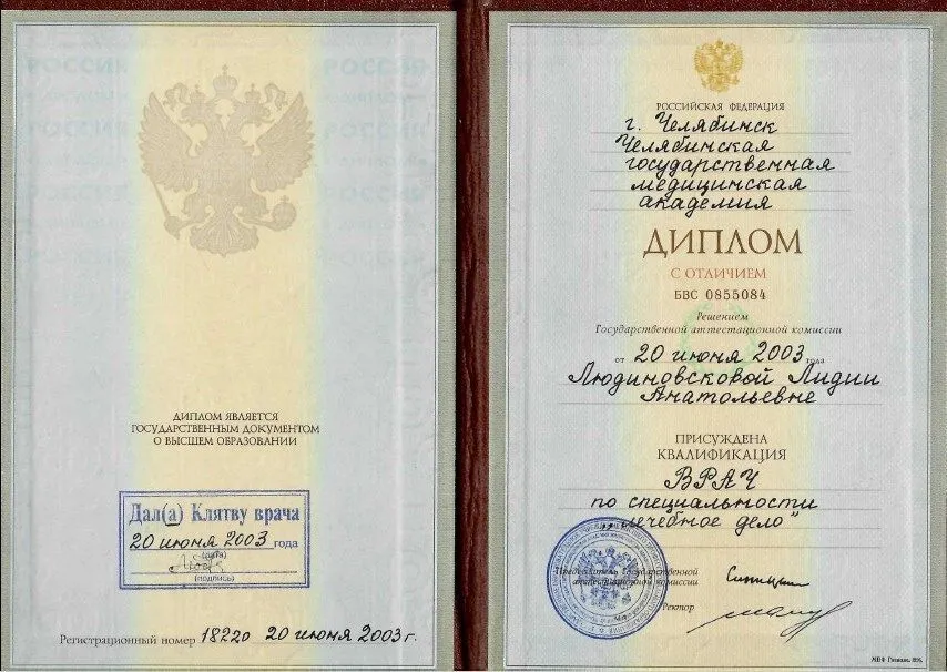 - 2004 г. – ГОУ ДПО «Уральская государственная медицинская академия дополнительного образования» г. Челябинск, присвоена квалификация врача-терапевта